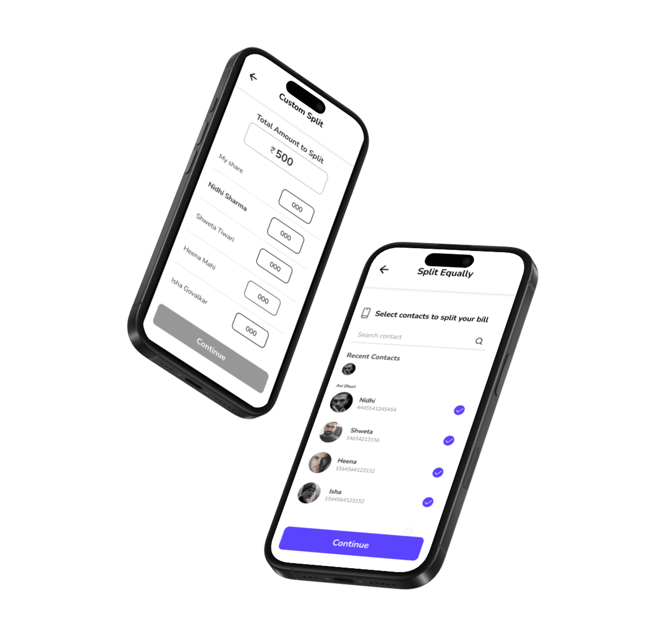 Equal split or custom split options at your fingertips.
